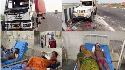 केएमपी एक्सप्रेस वे पर भीषण हादसा: कैंटर की टक्कर से 4 मजदूरों की मौत, 32 घायल
