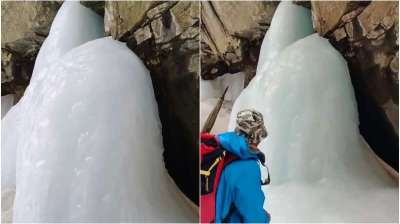 नेलांग घाटी में बर्फ से बना शिवलिंग, श्रद्धालु बोले – बाबा बर्फानी के दर्शन का सौभाग्य