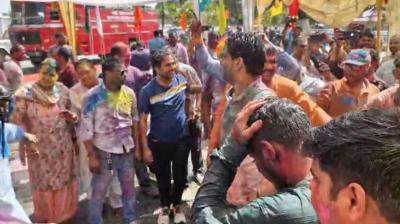 खाकी भी रंगों में रंगी, पुलिस लाइन में SP-IG जमकर थिरके