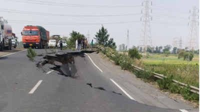 भोपाल-विदिशा रोड पर 50 मीटर धंस गई सड़क, 20 फीट गहरा हुआ गड्ढा