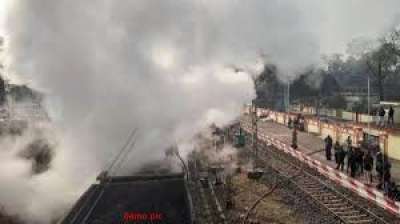 मालगाड़ी में लगी आग, दमकल बुलाकर बुझाई आग