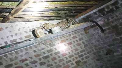 ग्रामीण के घर में घुसा तेंदुआ, घरवालों में कमरे में किया कैद,