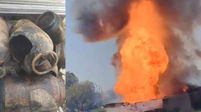 टेंट हाउस के गोदाम में लगी भीषण आग, बम की तहर फटे गैस सिलेंडर