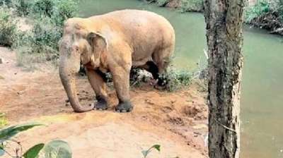 दवा खाने के बाद चलकर सुईआरा जंगल पहुंचा चोटिल हाथी