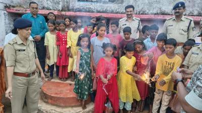 बैतूल एसपी वीरेंद्र जैन पंहुचे जूनावानी गाँव, बच्चों को बांटे पटाखे और मिठाई, पटाखे जलाकर मनाई दिवाली