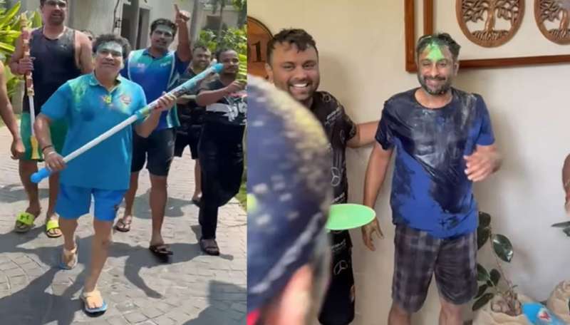 मुंबई में सचिन ने अपने साथियों के साथ होली खेली। उन्होंने इंटरनेशनल मास्टर्स लीग के अपने साथियों युवराज सिंह, इरफान पठान, युसुफ पठान और अंबाती रायडू के साथ होली मनाई। सचिन ने एक वीडियो शेयर किया जिसमें वो युवराज पर पानी की पिचकारी से रंग डाल रहे हैं। वो युसुफ और रायडू पर भी रंग लगाते दिख रहे हैं। इसी बीच रायुडू ने सचिन तेंदुलकर के पैर छूकर उन्हें प्रणाम भी किया। किसी सीनियर को इज्जत कैसे दी जाती है यह हर किसी को रायुडू से सीखना चाहिए।