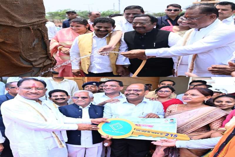 इसके बाद मुख्यमंत्री मुरमुंदा पहुंचे, जहां उन्होंने अटल आवास योजना के तहत निर्मित 226 आवासों का लोकार्पण किया। मुख्यमंत्री ने अटल आवास क्रमांक 226 के हितग्राही श्री तुषार को अपने हाथों से चाबी सौंपी और गृह प्रवेश कराया। इस अवसर पर मुख्यमंत्री ने अन्य हितग्राहियों को उनके आवास की चाबियां भी सौंपी तथा उन्हें बधाई एवं शुभकामनाएं दी। इस अवसर पर उपमुख्यमंत्री श्री विजय शर्मा एवं अन्य जनप्रतिनिधि भी उपस्थित थे।
