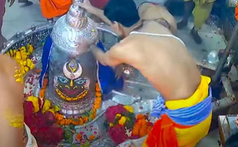 श्री महाकालेश्वर मंदिर के पुजारी ने बताया कि विश्व प्रसिद्ध श्री महाकालेश्वर मंदिर मे भादव माह शुक्ल पक्ष की सप्तमी तिथि वार शनिवार पर सुबह 4 बजे भस्म आरती हुई। इस दौरान वीरभद्र जी से आज्ञा लेकर मंदिर के पट खुलते ही पण्डे पुजारियों ने गर्भगृह में स्थापित सभी भगवान की प्रतिमाओं का पूजन किया। जिसके बाद भगवान महाकाल का जलाभिषेक दूध, दही, घी, शक्कर पंचामृत और फलों के रस से किया गया। पूजन के दौरान प्रथम घंटाल बजाकर हरि ओम का जल अर्पित किया गया।