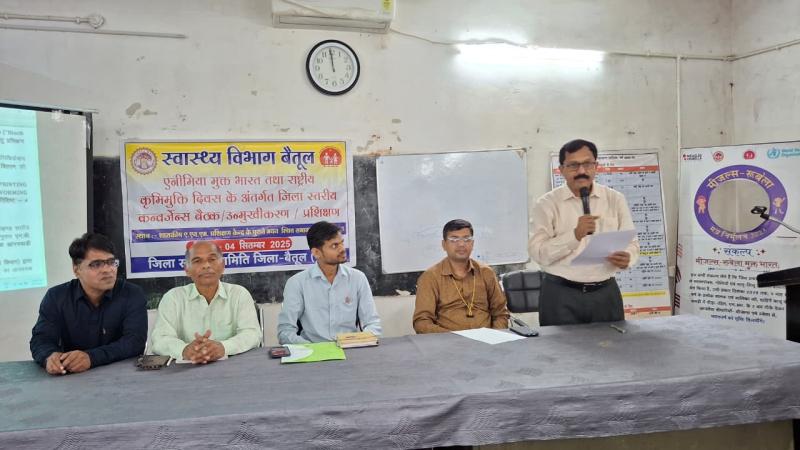 कलेक्टर नरेन्द्र कुमार सूर्यवंशी के मार्गदर्शन में जिले में एनीमिया मुक्त भारत तथा राष्ट्रीय कृमि मुक्ति दिवस कार्यक्रम 23 सितम्बर तथा मॉप अप दिवस का आयोजन 26 सितम्बर 2025 को किया जाएगा। जिसके अंतर्गत एएनएम प्रशिक्षण केन्द्र टिकारी बैतूल में शुक्रवार को स्वास्थ्य विभाग, महिला एवं बाल विकास विभाग एवं शिक्षा विभाग की कन्वर्जेंस बैठक का आयोजन किया गया।