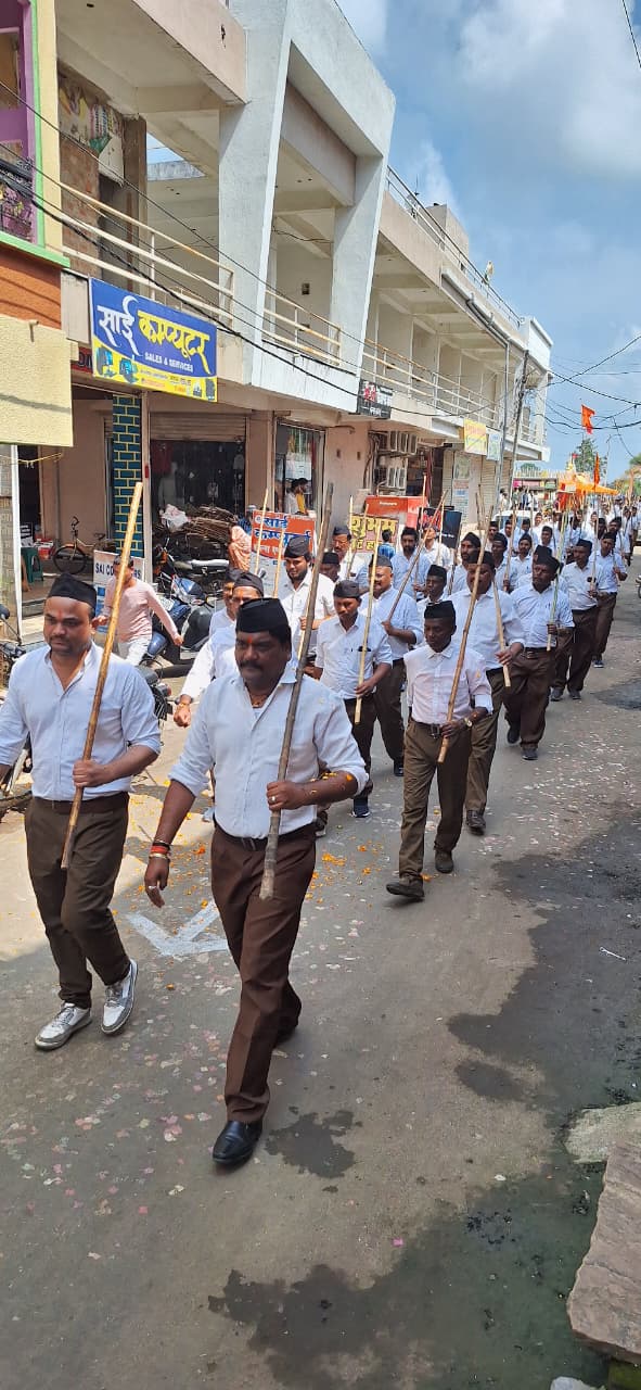 भैंसदेही माँ पूर्णा की नगरी भैंसदेही में रविवार को सरस्वती शिशु मंदिर विद्यालय से विराट पथ संचलन निकला। पथ संचलन बस स्टैंड, शीतला माता मंदिर, काटोल मोहल्ला, गजानन बुक डिपो, मस्जिद, लालजी मंगलवारी, देवी मंदिर, सुनार मोहल्ला, विठ्ठल किराना, राम मंदिर, एसबीआई बैंक होते हुए थाने के सामने से शीतला चौक से विद्यालय पर संपन्न हुआ। इस दौरान पथ संचलन का जगह-जगह पुष्प वर्षा कर स्वागत किया गया। इस अवसर पर मंचासीन मुख्य अतिथि अरूण जैन, जिला सह संघ चालक खेमराज डढोरे, खंड संचालक ताप्ती प्रसाद चंदेल, मुख्य वक्ता नर्मदापुरम विभाग सह सेवा प्रमुख अभिषेक खंडेलवाल रहे। मुख्य वक्ता नर्मदापुरम विभाग सह सेवा प्रमुख अभिषेक खंडेलवाल ने बताया कि वर्ष 1925 में विजयादशमी के दिन डॉक्टर केशव बलिराम हेडगेवार ने नागपुर में राष्ट्रीय स्वयंसेवक संघ की नींव रखी थी। मात्र 15 वर्षों में उन्होंने संघ को पूरे देश में विस्तार दिया। द्वितीय सरसंघचालक श्री गुरुजी ने अपने 33 वर्षों के कार्यकाल में समाज जीवन के विभिन्न क्षेत्रों में जागरण किया। बाला साहब देवरस ने समाज की चुनौतियों को पहचाना और समाधान की दिशा में कार्य किया। यहां आयोजित कार्यक्रम में क्षेत्रीय विधायक महेन्द्र सिंह चौहान सहित संघ की विचारधारा से जुड़े सभी कार्यकर्ताओं ने आयोजित पथ संचलन के निर्धारित मार्गों पर बैंड की धुन पर कदमताल कर नगर भ्रमण किया। सामाजिक समरसता और कुटुंब प्रबोधन तथा स्वदेशी से देश की निति बदलने के अपने संकल्प को दोहराते हुए संगठन गढऩे एंव सुपंथ पर बढऩे वाले अपने 100 वर्षो के इतिहास एंव सामूहिक शक्ति का परिचय दिया, पथ संचलन में शामिल सभी स्वयं सेवको का नगर के चौक चौराहों पर नगर नागरिको द्वारा पुष्प वर्षा कर स्वागत एंव उत्साहवर्धन किया गया। तुलजाई कोचिंग निशुल्क संस्था द्वारा भैंसदेही के चौक-चौराहे पर विशेष रांगोली व पुष्पवर्षा से पथ संचलन का भव्य स्वागत किया। सकल हिन्दू समाज, एबीवीपी, धार्मिक संस्थाओं द्वारा पुष्प वर्षा कर समापन किया गया।