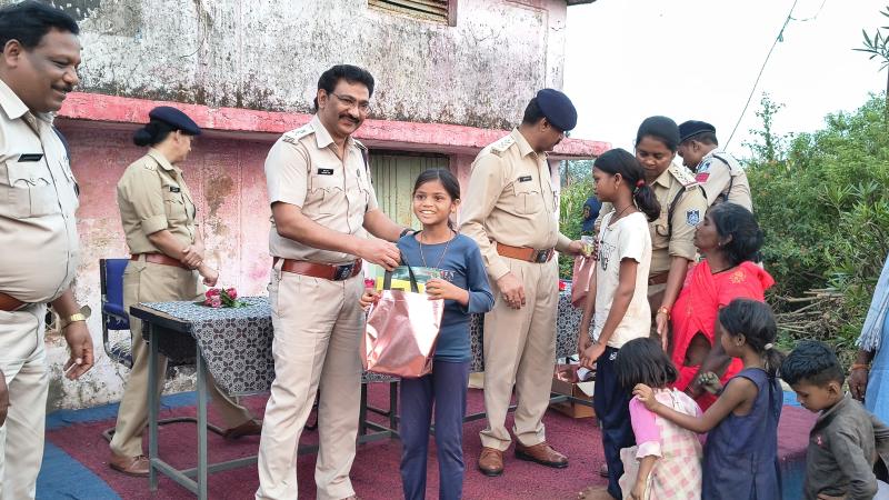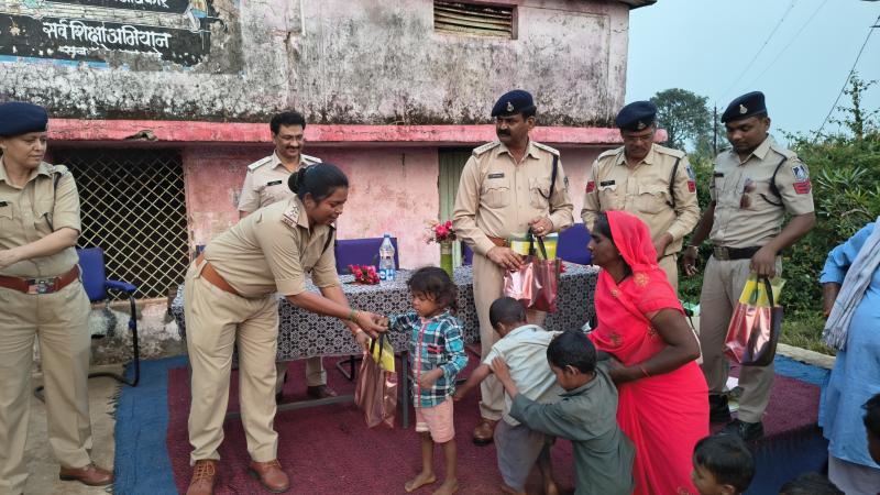 बैतूल एसपी वीरेंद्र जैन पंहुचे जूनावानी गाँव, बच्चों को बांटे पटाखे और मिठाई