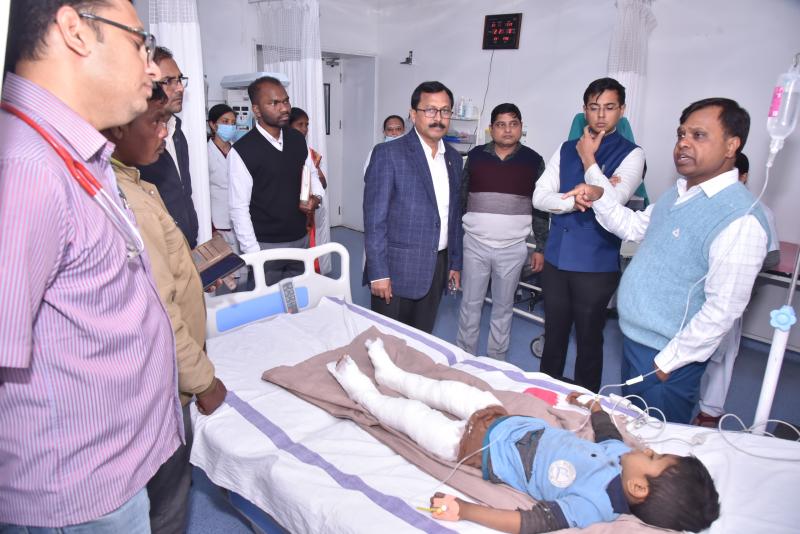 कलेक्टर पहुंचे जिला अस्पताल, घायल बच्चों को बेहतर उपचार उपलब्ध कराने के दिए निर्देश
