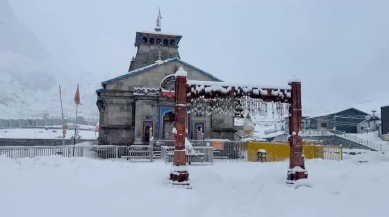 केदारनाथ धाम की बर्फबारी ने बढ़ाई यात्रियों की चिंता, मौसम अलर्ट जारी