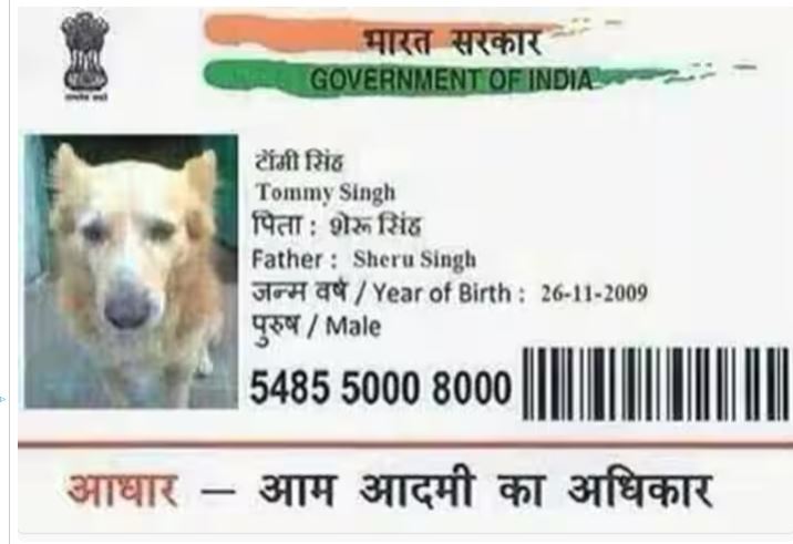 कुत्ते का आधार कार्ड जारी, नाम रखा गया टॉमी जैसवाल
