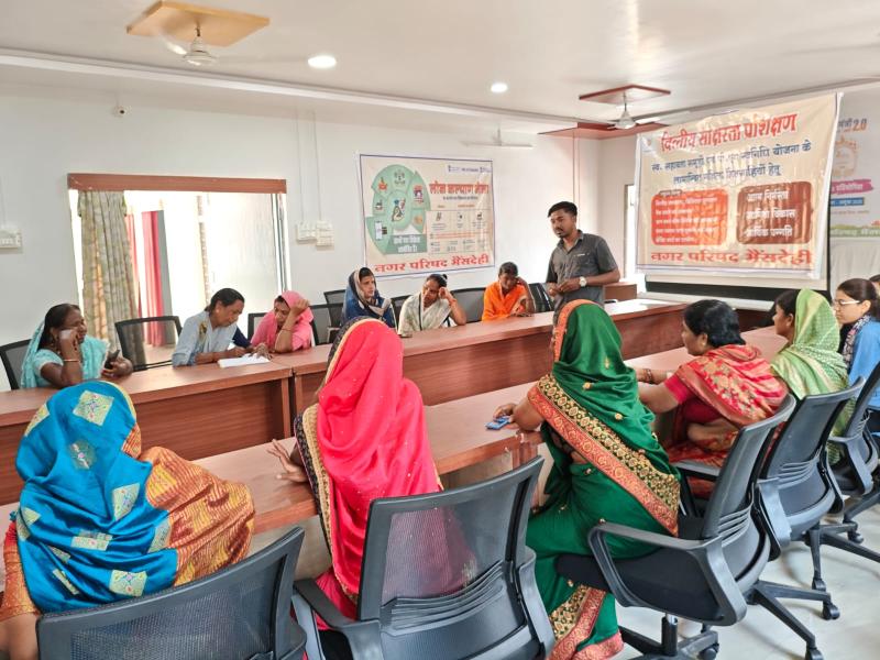 नगर परिषद भैंसदेही के अंतर्गत अध्यक्ष मनीष सोलंकी मुख्य नगरपालिका अधिकारी सुश्री रीना सिंह राठौर के मार्गदशर्न में वित्तीय साक्षरता प्रशिक्षण कार्यक्रम अंतर्गत महिला स्व सहायता समुह एवं पीएम स्वनिधि की लाभान्व्त महिला को नगर परिषद सभाकक्ष में प्रशिक्षण कार्यक्रम आयोजित कर लोक कल्याण मेले का आयोजन किया गया जिसके अंतर्गत तकनीकि विततीय ज्ञान, आर्थिक उदद्यमिता, बैंकिग सेवाओं, उिजिटल लेनदेन, बीमा बचत तथा सरकारी योजनाओं का समुचित जानकारी देकर स्वसहायता समुह को प्रशिक्षण दिया गया। महिलाओं की आर्थिक स्थिति मजबुत करने हेतु सशक्तीकरण की दिशा में महिलाओ ंको स्वरोजगार से जुडने के लिए प्ररित किया गया , प्रशिक्षण कार्यक्रम में किशोर सिंह ठाकुुुर , ,सौरभ मर्सकोले, सौरभ राजुरकर, अंकिता धोटे, अंकिता वाघमारे एवं स्वसहायता समुह की महिलाए उपस्थित रही।