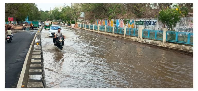 भोपाल में लोक भवन के सामने सड़क धंसने से हड़कंप, पानी भराव से लोग परेशान