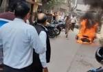 कोर्ट परिसर के नजदीक बाइक में लगी आग, चालक ने कूदकर बचाई जान -