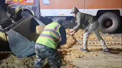 बैतूल नागपुर फोरलेन पर गन्ना ट्राली पलटने से एक्सप्लोसिव वेन और ट्रक की हुई टक्कर