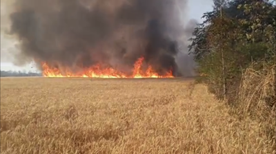 03 किसानों की करीब 12 एकड़ गेहूं की फसल जलकर राख : महाविद्यालय के पास ठानीखेड़ा के खेत में लगी आग