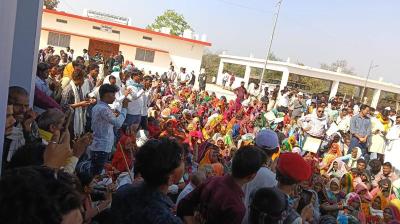 जमीन के बदले उचित मुआवजे के लिए कलेक्टर कार्यालय का घेराव