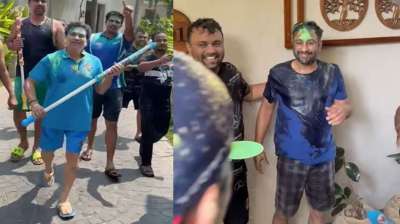 सचिन तेंदुलकर ने IML 2025 में अपने साथियों के साथ खेला होली, रायडू ने छुए पैर